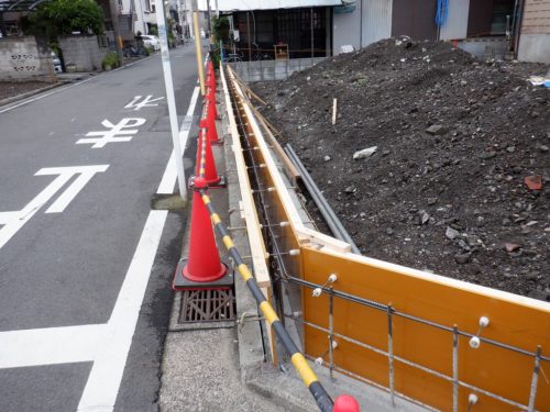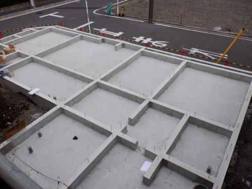 後から外構を行うこともあるのですが、埋め戻しの関係で外周の基礎先行工事です。