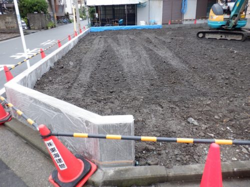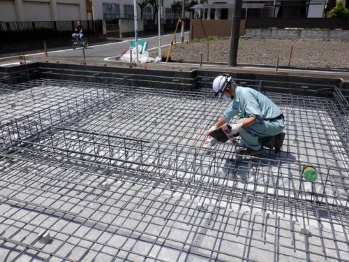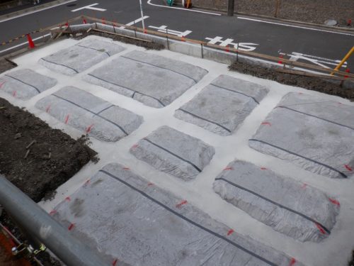 掘削を行い防湿シートを敷いてから捨てコン打ちを行い