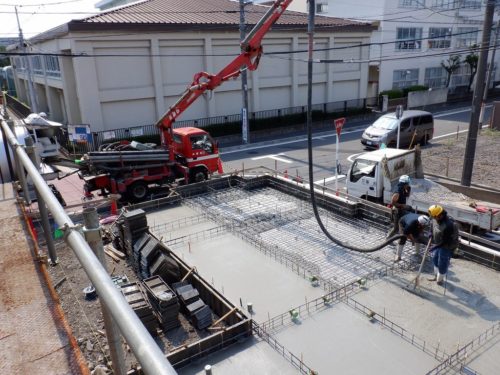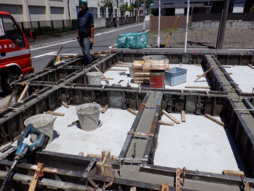 立ち上がりの型枠工事→立ち上がりのコンクリート打ちへと