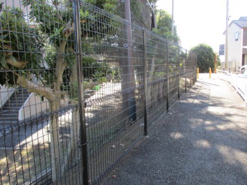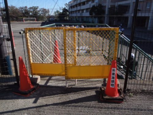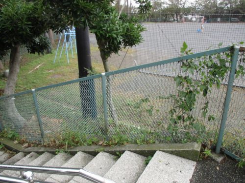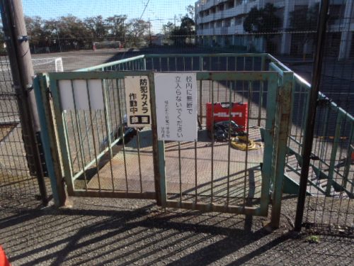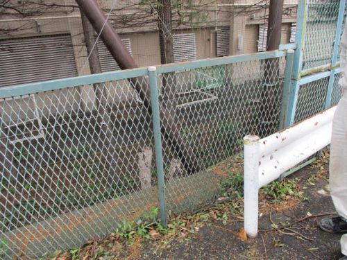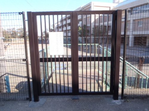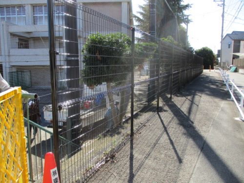 横浜市中区の中学校にて、グラウンド脇のフェンスと門扉を改修する工事です。