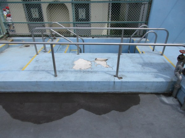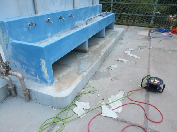 衛生経路の床の塗装が剥がれて、塗装の角が出ています!