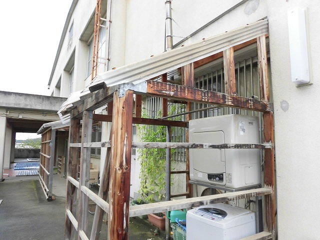 だったのですが、屋根/壁に使用されている小波ポリカーボネート板が劣化している為、取り外した際に割れて再利用できない状態でした。