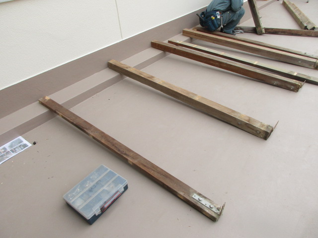 ですが下地木材はほぼ再利用できる状態でしたので、「解体、組立、新しい板での屋根と壁を作る」事とし、ご提案させていただきました。
