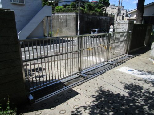 磯子区中学校にて門扉の入替工事をご紹介させて頂きます。