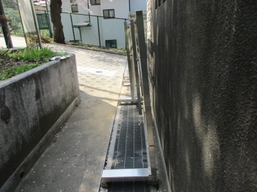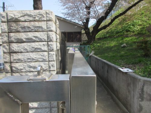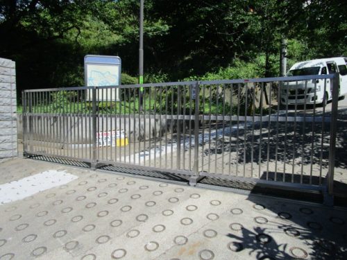 今回の工事、ステンレス製の3連門扉の3枚共に複雑な歪みがあり、ボルトが抜けてしまったり溶接部が千切れてしまったりと被害が酷かった為に3枚の門扉すべてを交換する工事となりました。