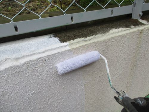 上塗材は一度塗りでは仕上がりませんので、中塗・上塗の2工程で仕上げます。
