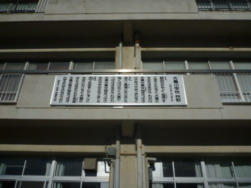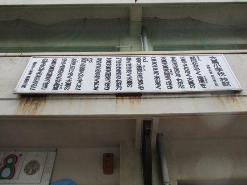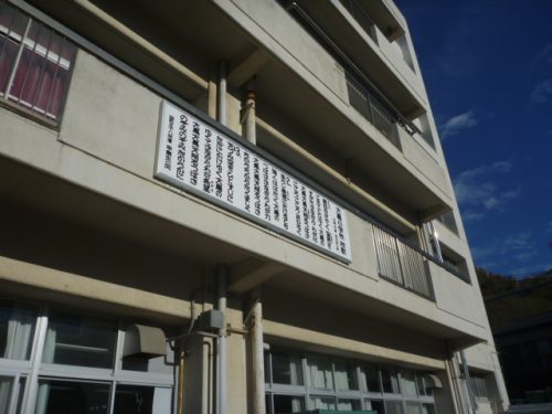 なお、最初に校歌を取付けた時代には小さかった樹木が大きくなって校歌にかぶってしまっていた為に場所を変えて取付です。