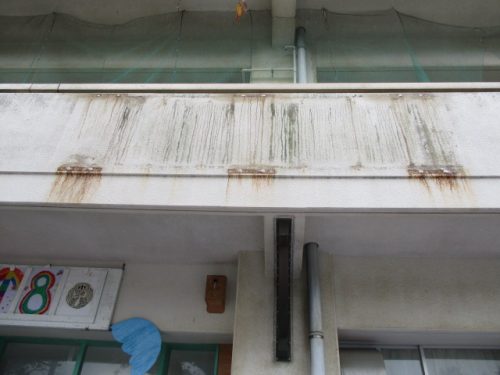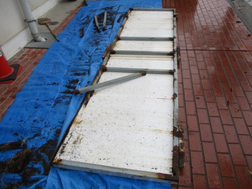 下地が鉄角パイプだった為、雨水等が溜り中から下地鉄角パイプを腐らせていました。