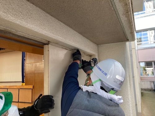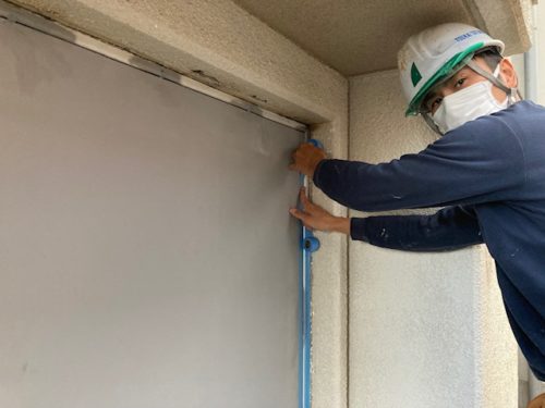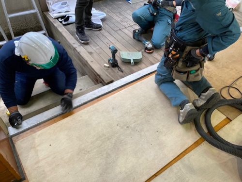 不要部を撤去したら新規扉の為の枠材をカバー工法にて取り付けていきます。