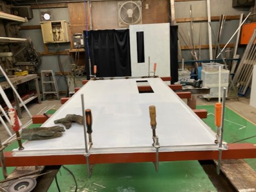 扉と壁が出来上がりましたので、現地で取付作業です。
