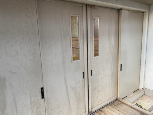 既存の扉はアルミ製の4枚引き違い扉だったのですが、