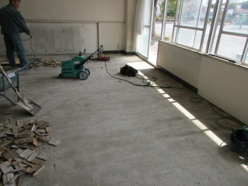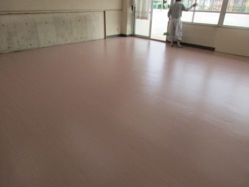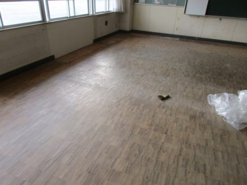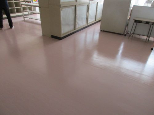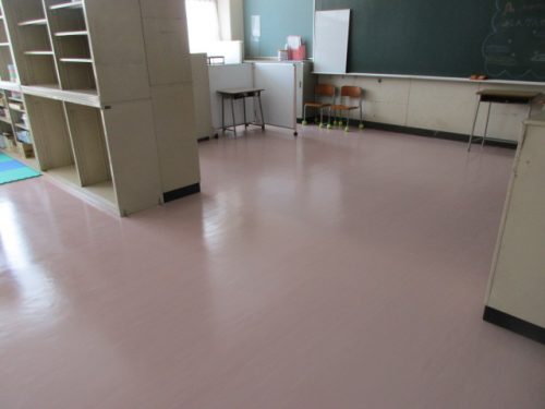 今回ご紹介するのは横浜市港南区の小学校にてフローリングの床を長尺シート床に改修する工事です。