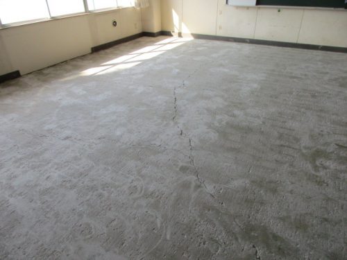 フローリングを剥がし終わったところ、下地に亀裂を発見しました。