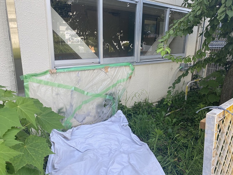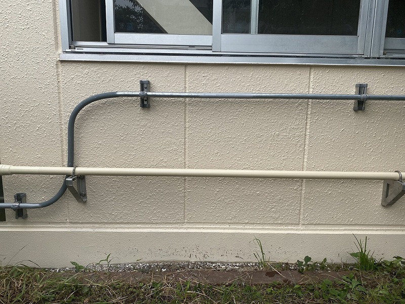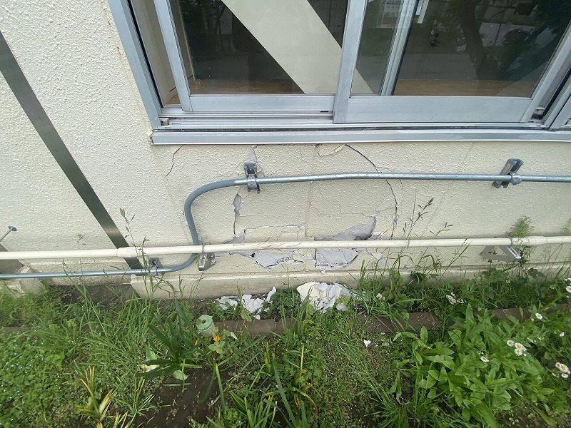 ①ALCパネルだけでなくエアコンのガス管、電気配管の修繕もある。
