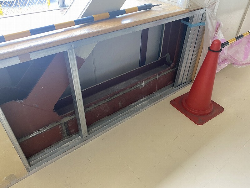 パネルの交換には校内側の壁を崩す必要がある為、壁を解体してALCパネルを設置していきます。