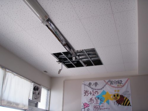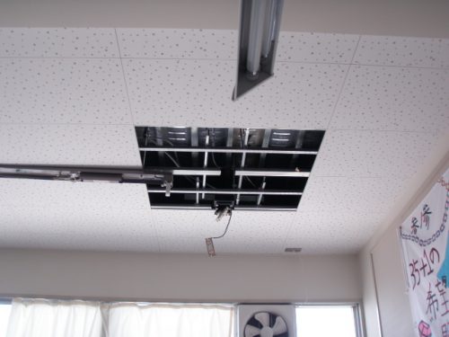 横浜市立の小・中学校でよく見る天井吊下げ式のテレビ台を撤去してきました!