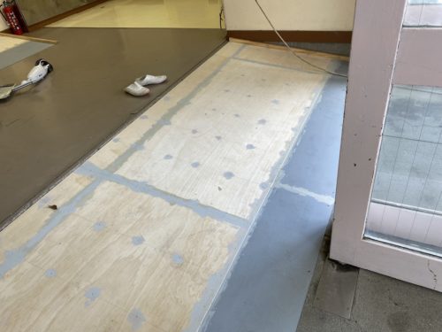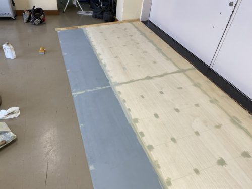 最後の仕上げにノンスリップ長尺シートを貼っていきます。