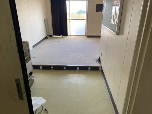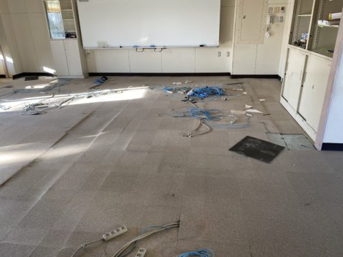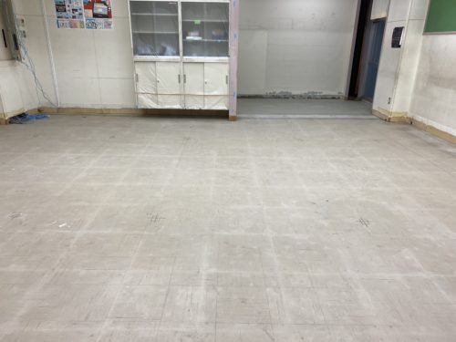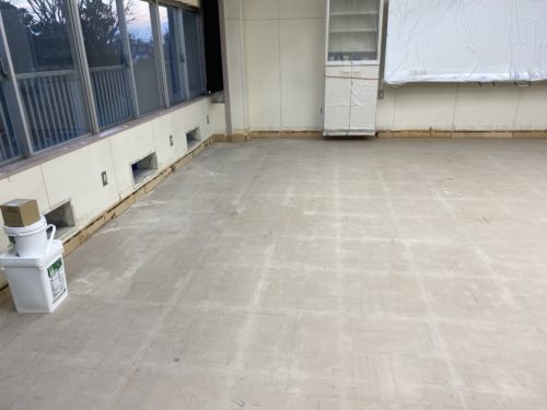 パソコンルームから教室に用途変更に伴う床改修工事です。