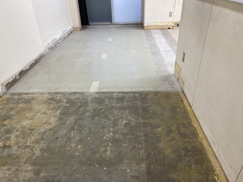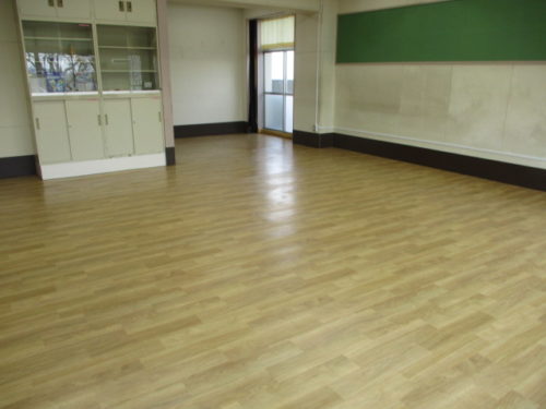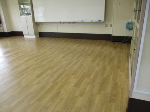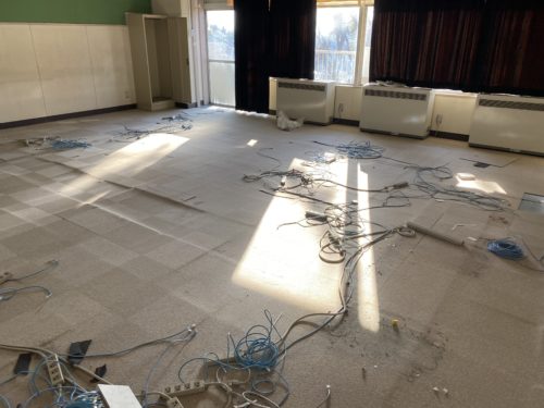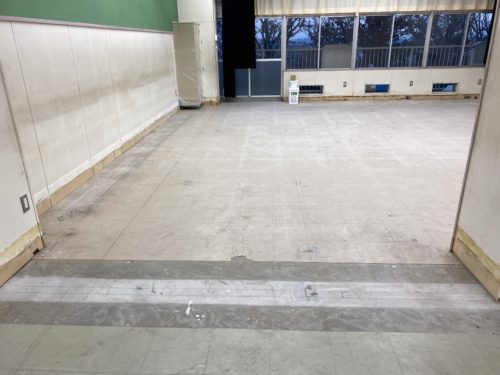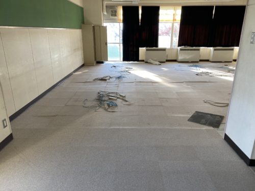 以前はパソコンルームの為のOAフロアとタイルカーペットが全面に敷かれていました。