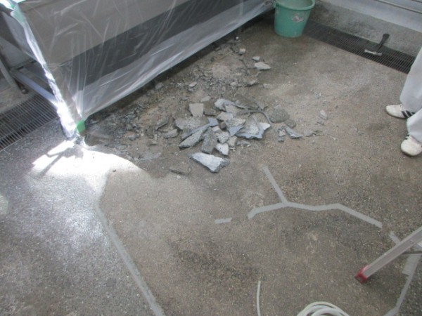 まずは、ハツリ工事で浮いている部分の床を撤去していきます。