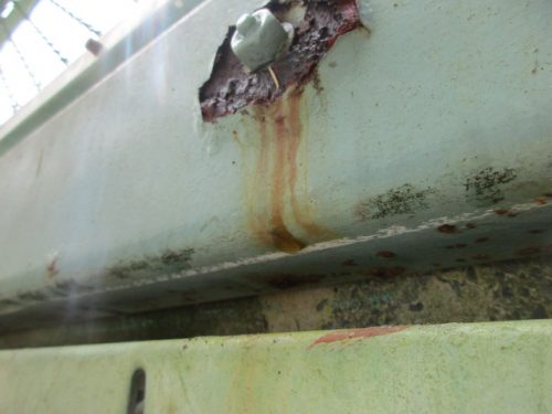 そして新しいC型鋼をアンカーボルトで固定し、端部と縦柱の部分を溶接しつなげていきます。