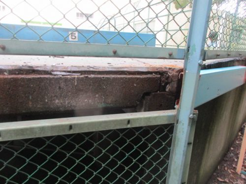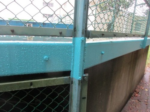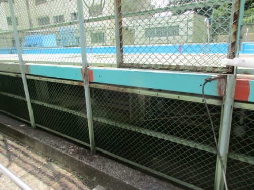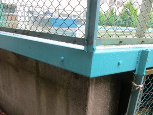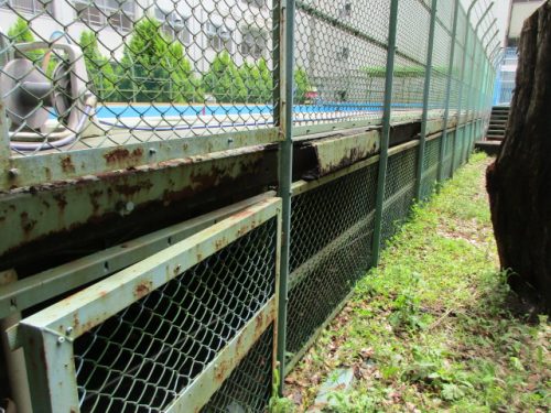 プール外周フェンスの隙間を塞ぐC型鋼が腐食しており、子供が触るとケガをしてしまいかねないという状態でした。