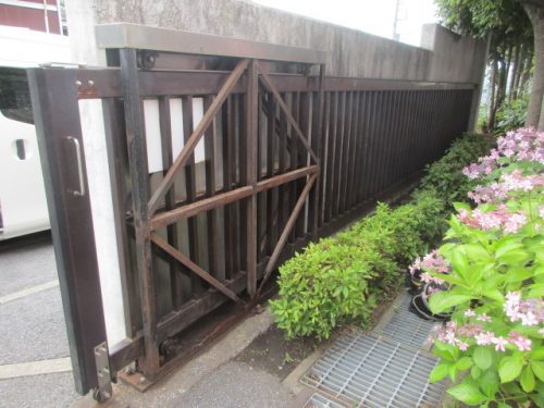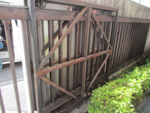 大型門扉 スチール製引き戸門扉の不具合を解消しました!