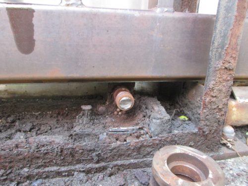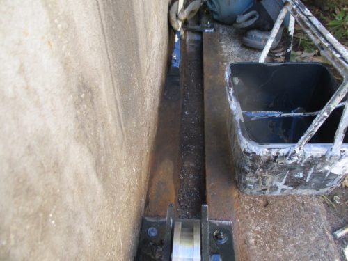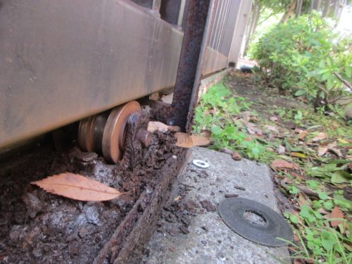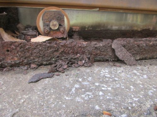 扉を支える2つの下戸車の内1つが腐食し、扉を動けなくさせていました。