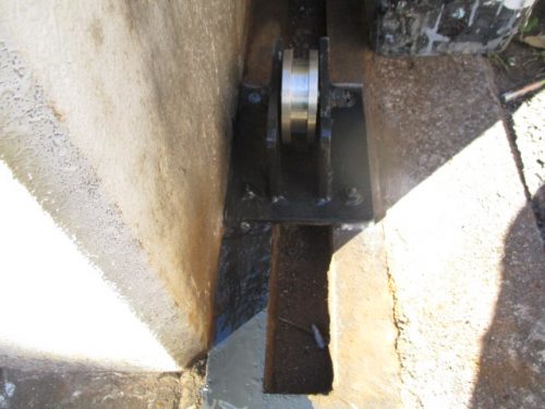 この門扉、鉄製の1枚門扉で重量もかなりの物ですが、長年スムーズに動いて使用できていました。