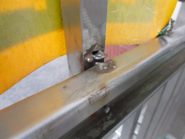 溶接箇所はアルマイト仕上を研磨してしまった為、塗装工事も行います。