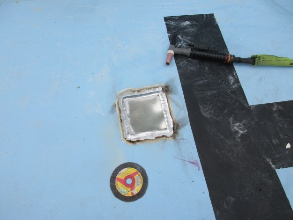 部分的な補修だったので、アルミの板を穴の上から