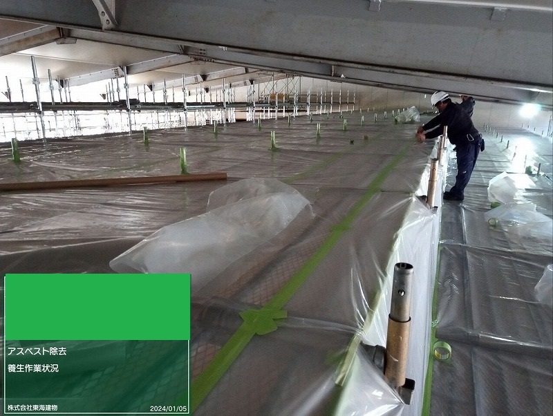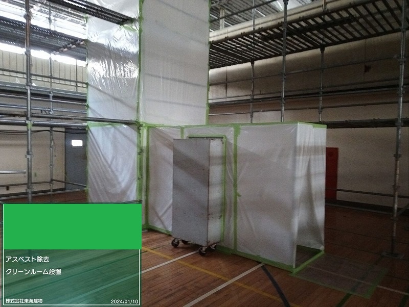 これを除去するには施工エリアを完全に密閉してクリーンルームを設置し、施工エリア外に対象物を飛散させないようにする