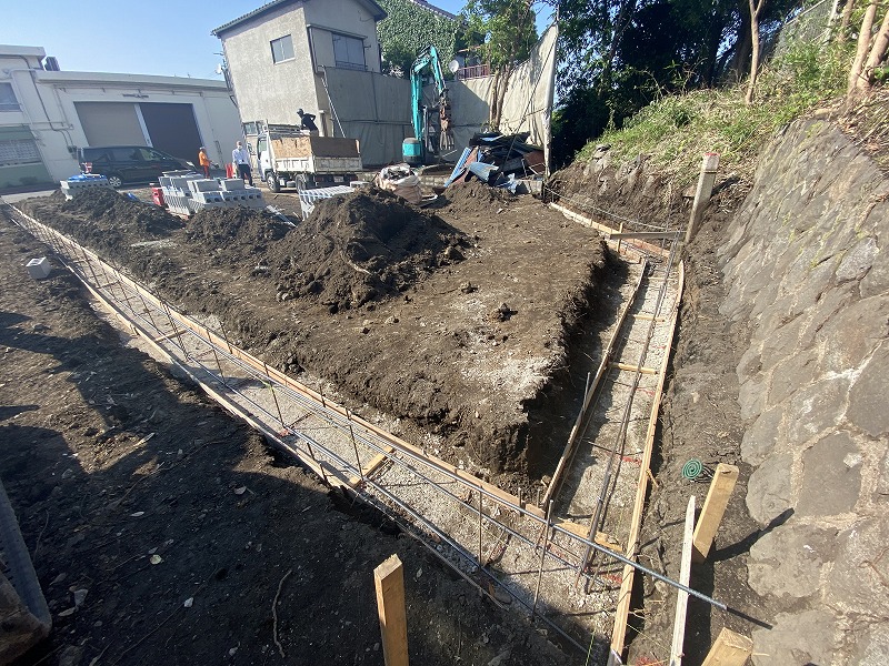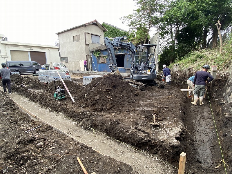 まずは基礎を建てるに為に、掘削の作業から行います。