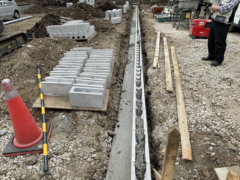 今回は舗装を敷きならすため、ブロックによるフェンス基礎となります。