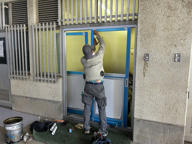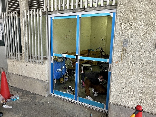 『部室出入口サッシ扉のカバー工法による修繕工事』になります!