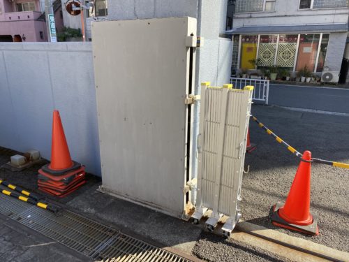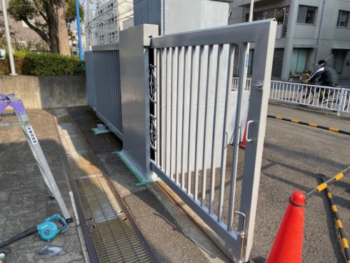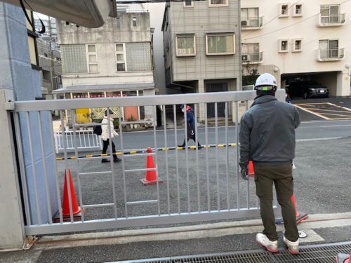 まず動かない門扉を撤去し、仮設ゲートを設置。