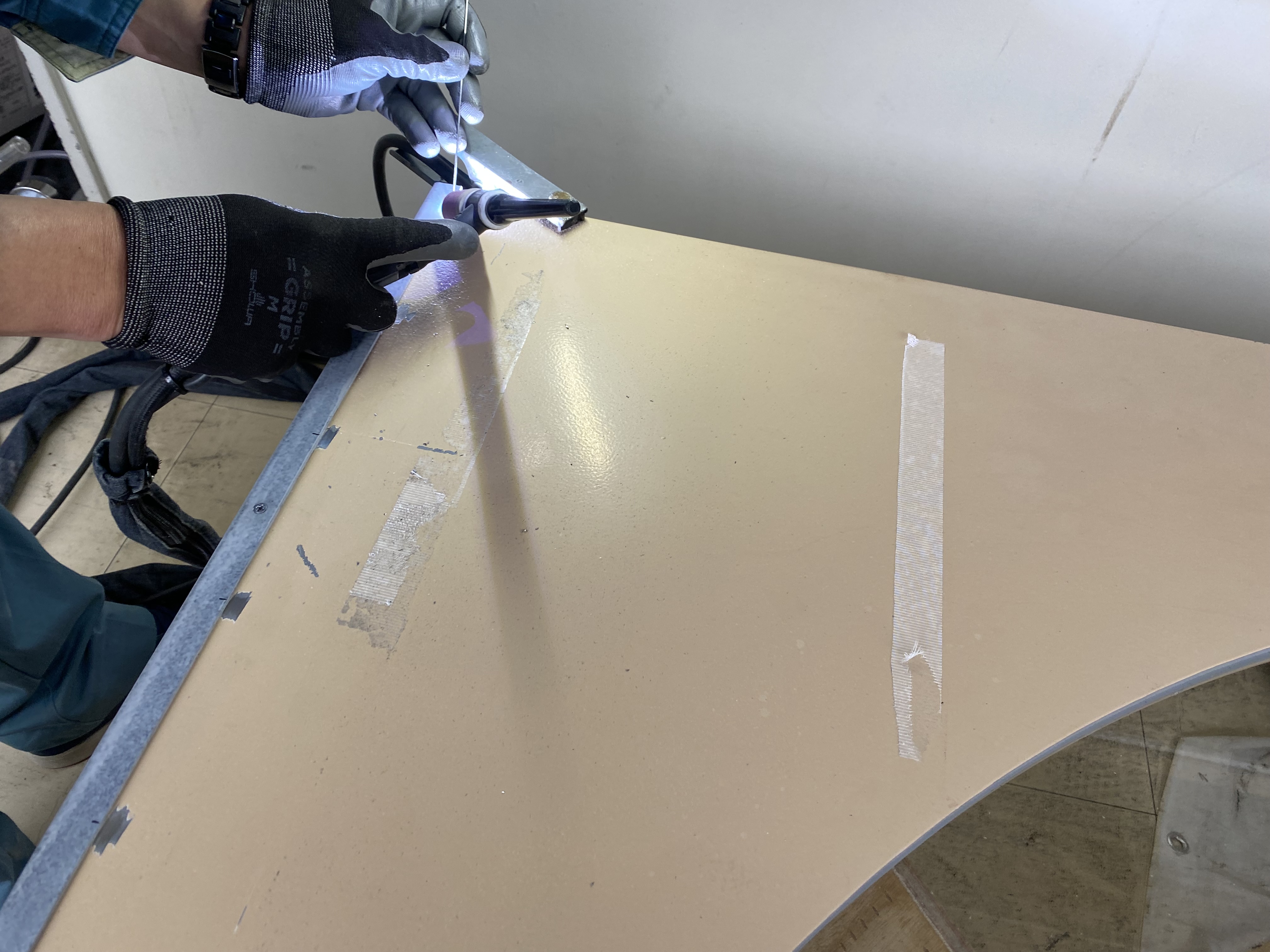 溶接箇所やレールカバーは既存同系色の塗料で仕上げていきます。