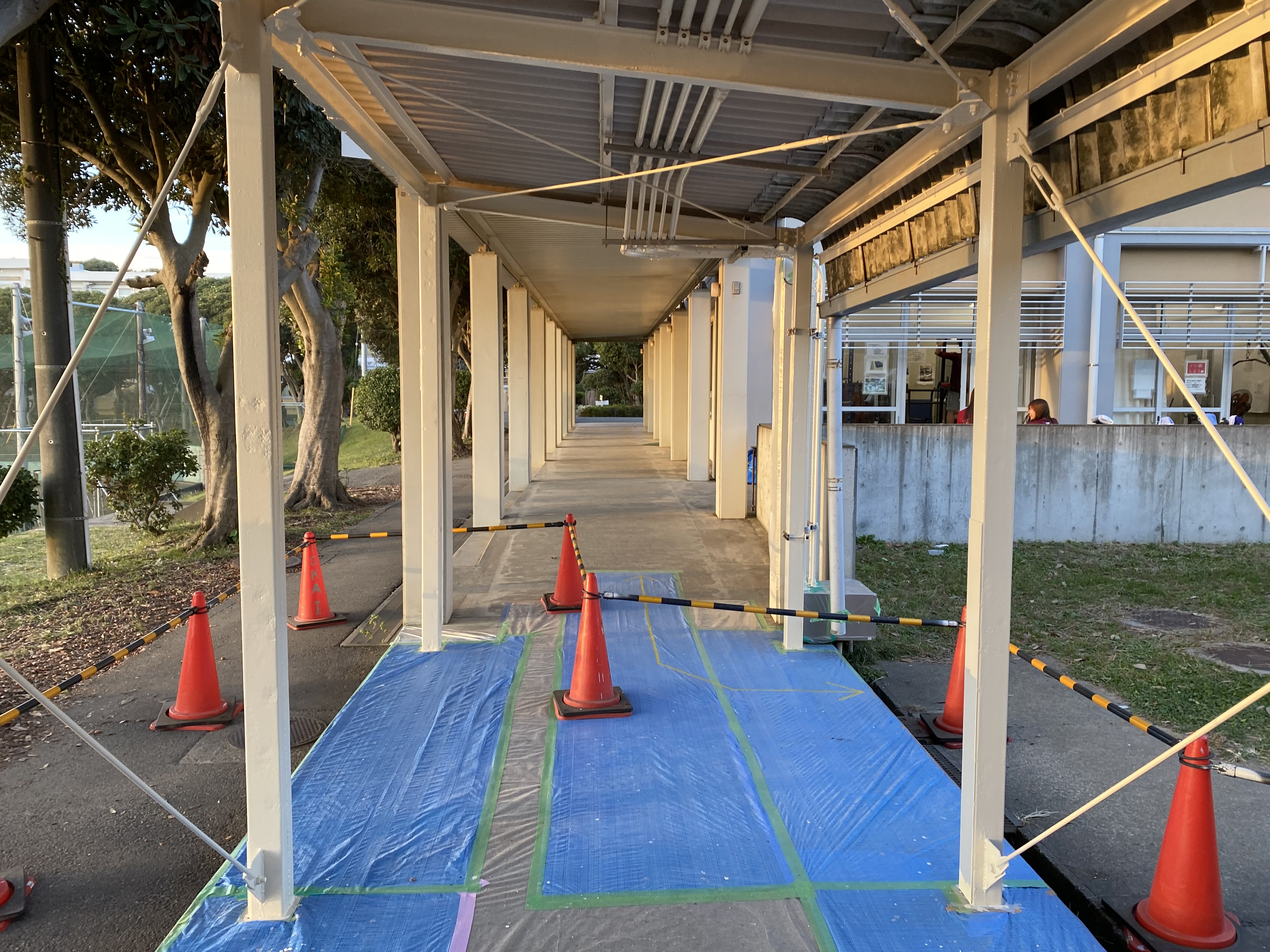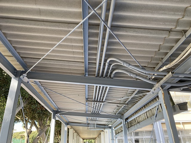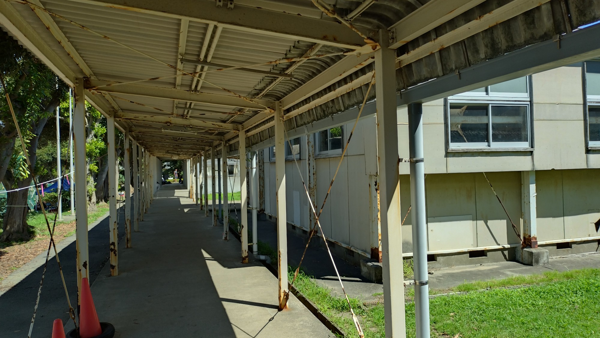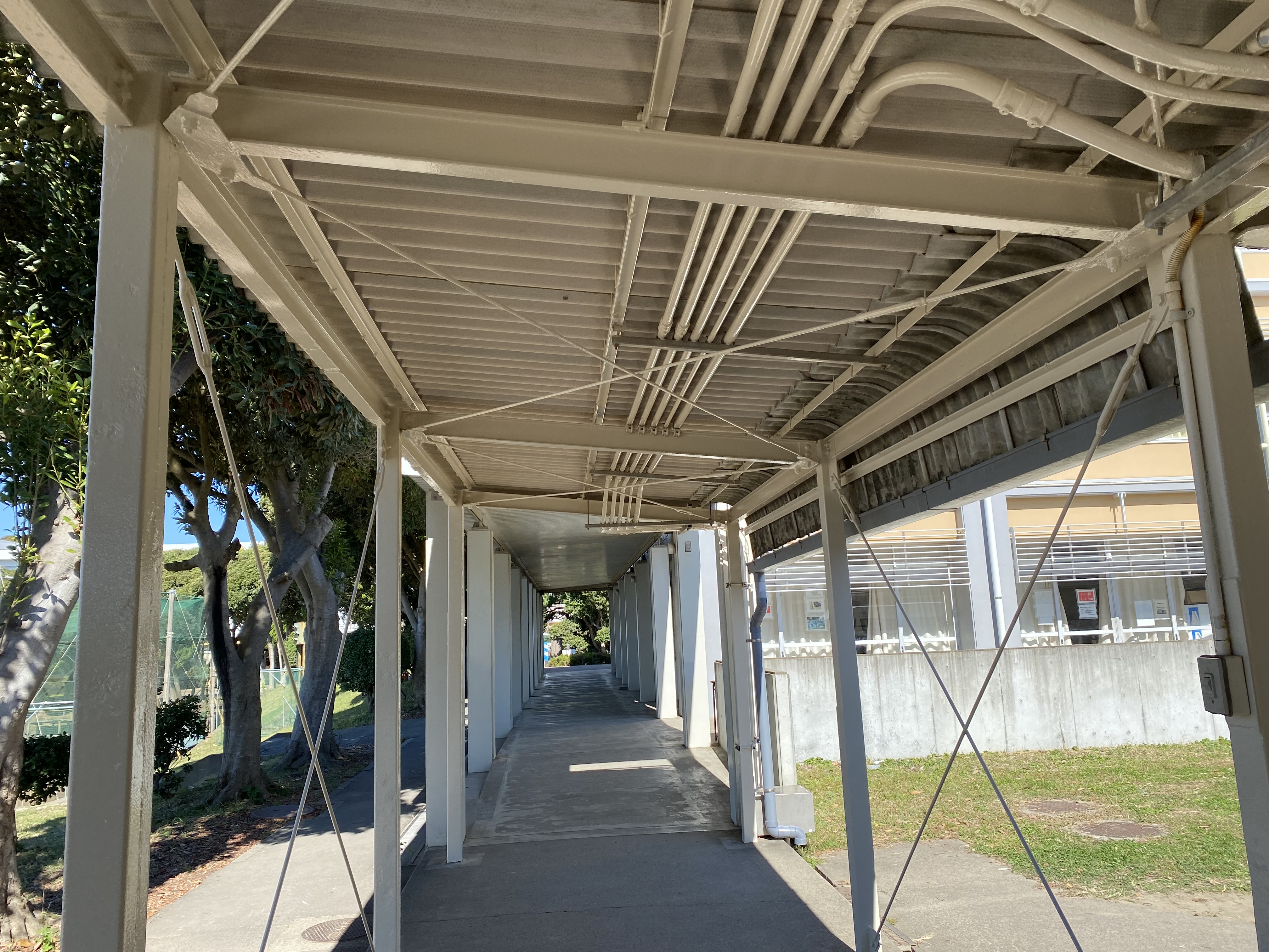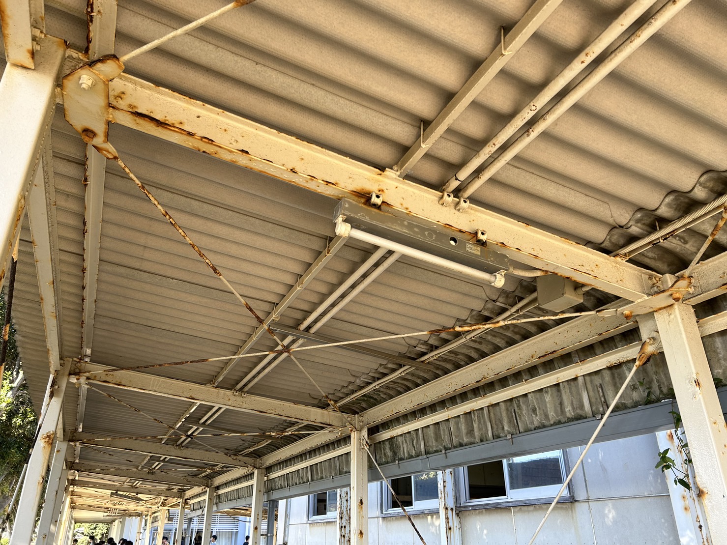 海岸沿いの学校ということもあり、塩害による鉄部腐食が目立つ状況でありました。