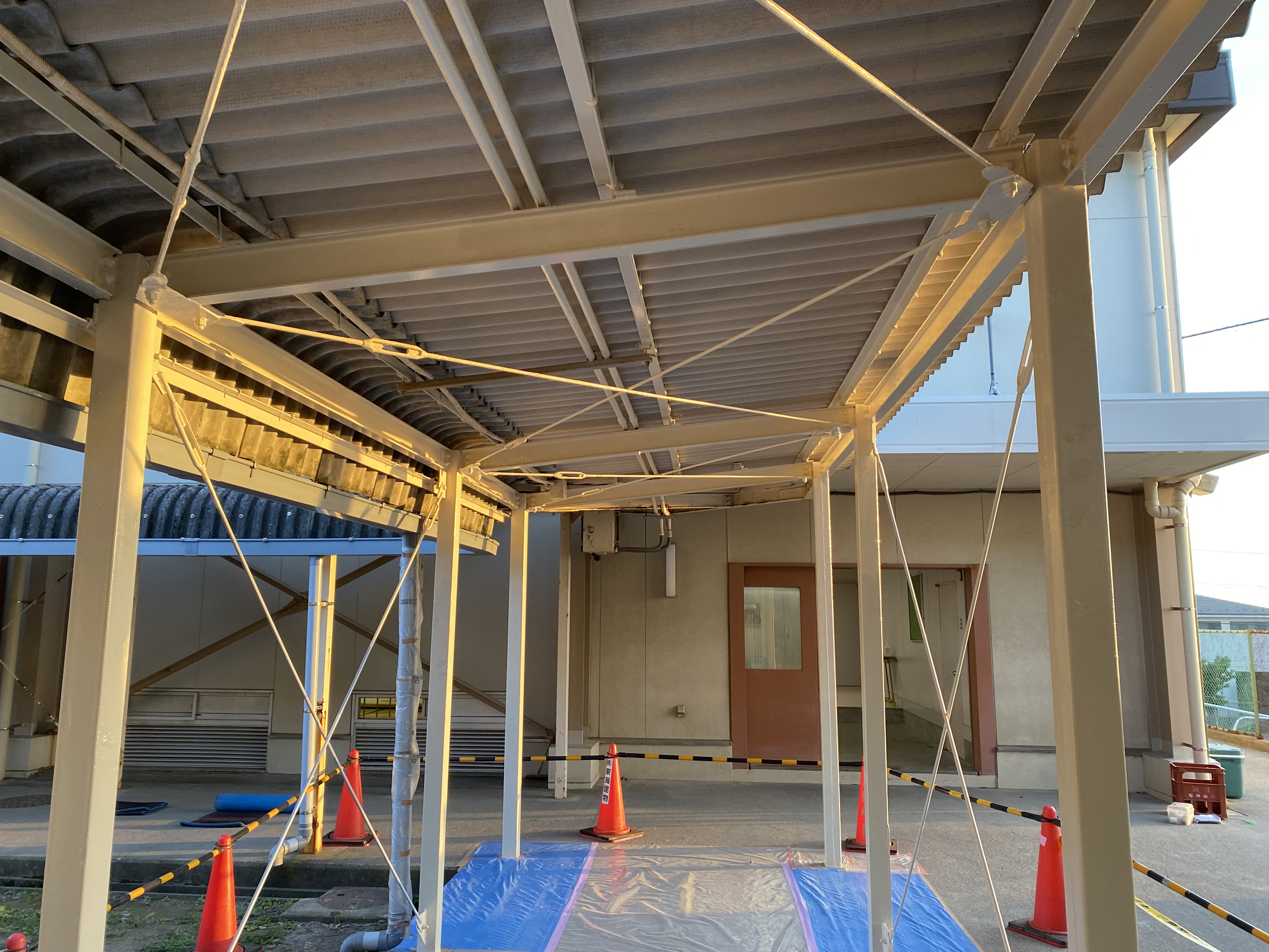 その為、水平ブレースの改修及び鉄骨・垂直ブレースの塗装工事を行わせていただきました。