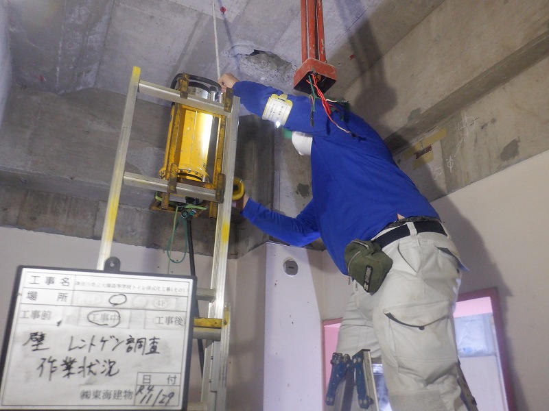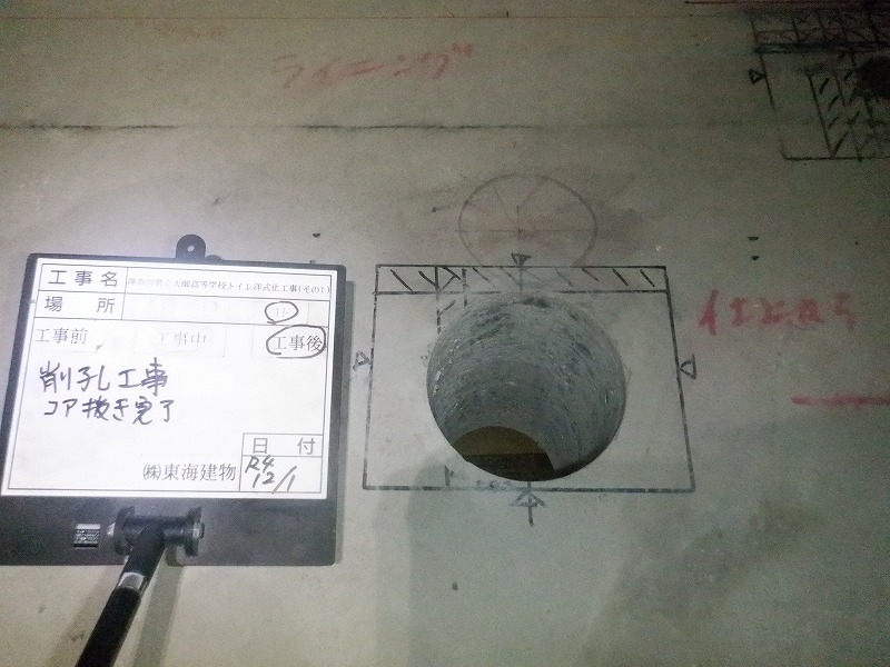 その後墨出しをして、鉄筋や配線など隠蔽部を調べるため