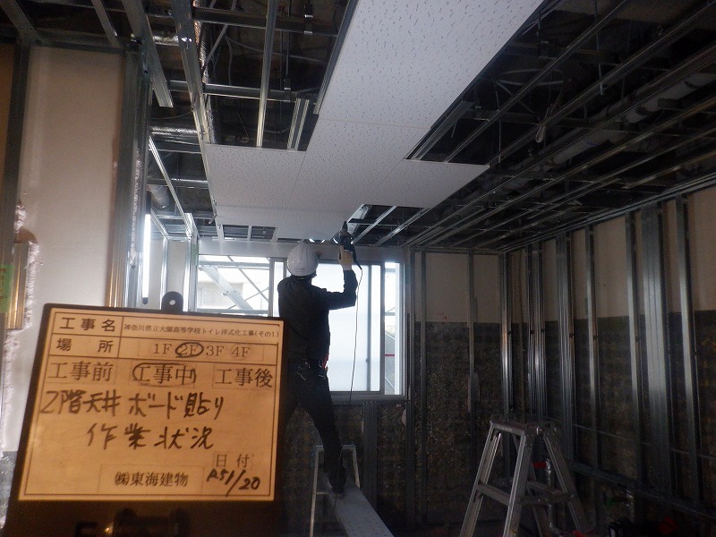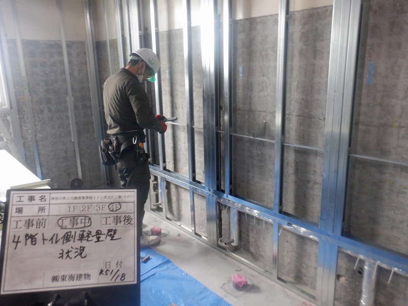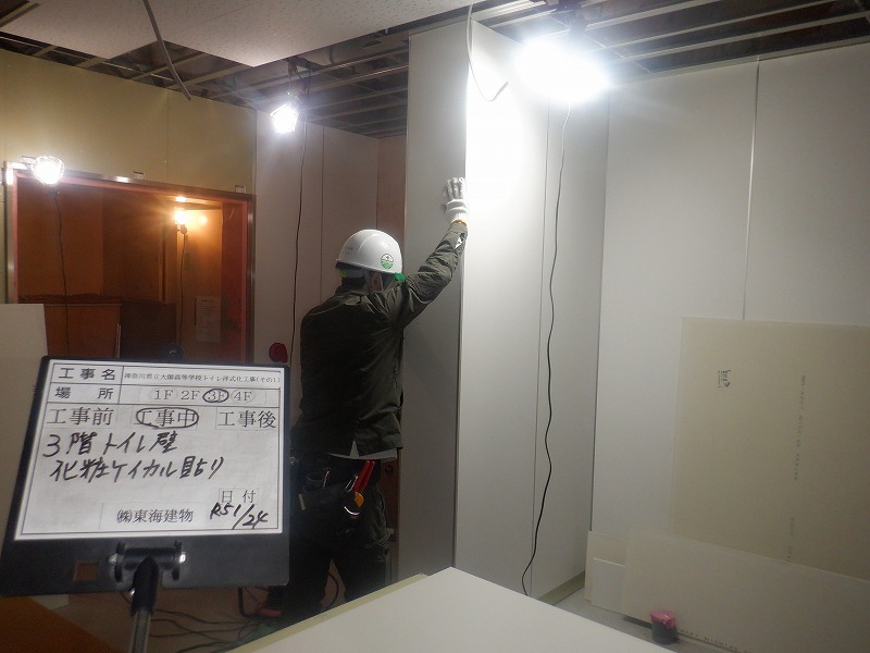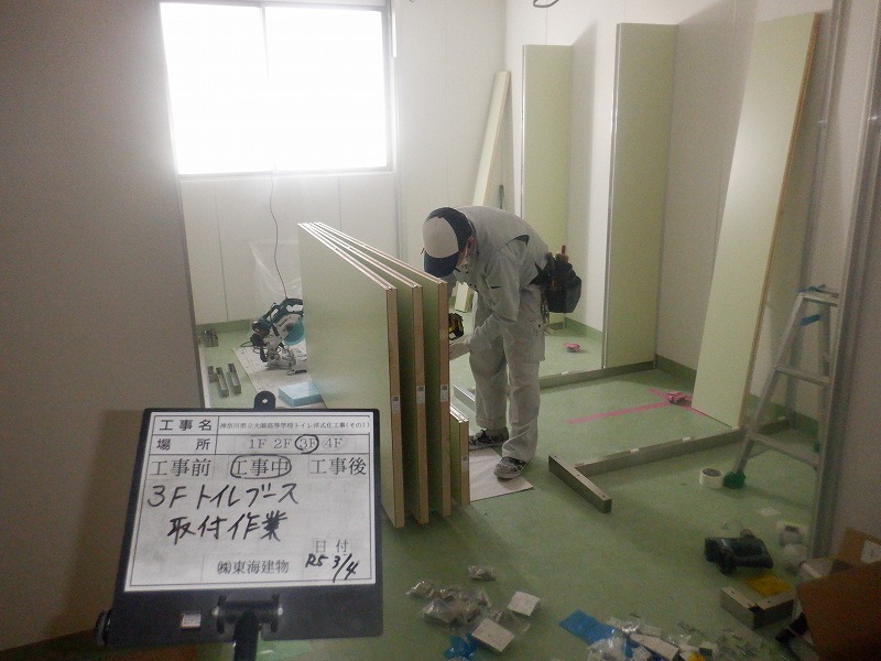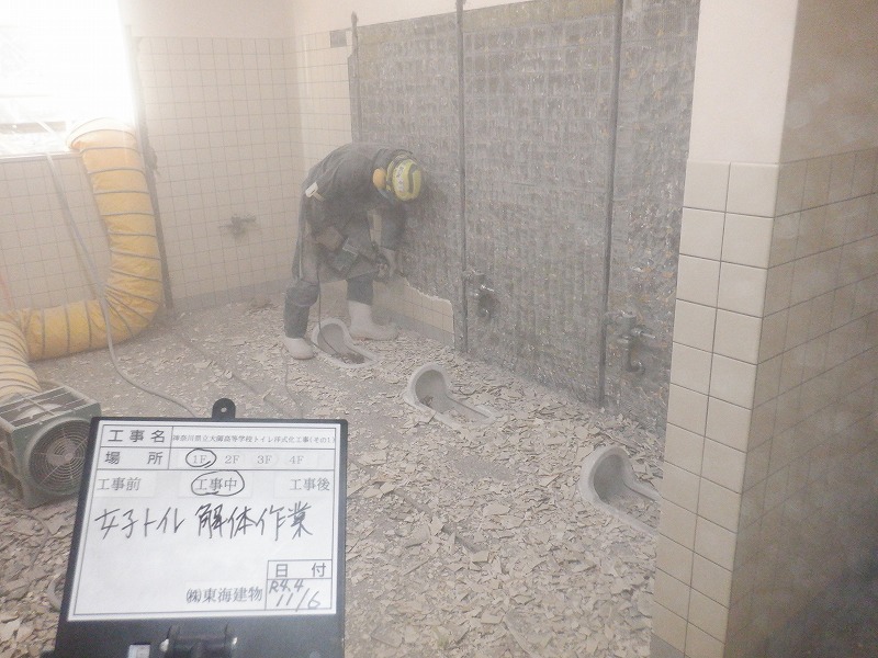 今回ご紹介いたします工事は 神奈川県立高校の女子トイレを改修工事をさせて頂きました。