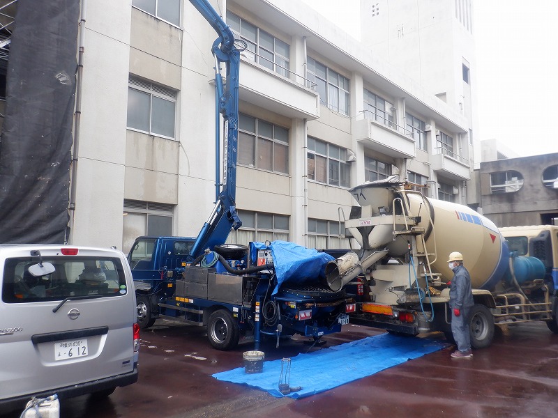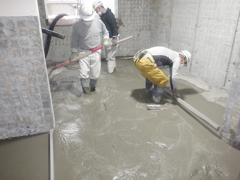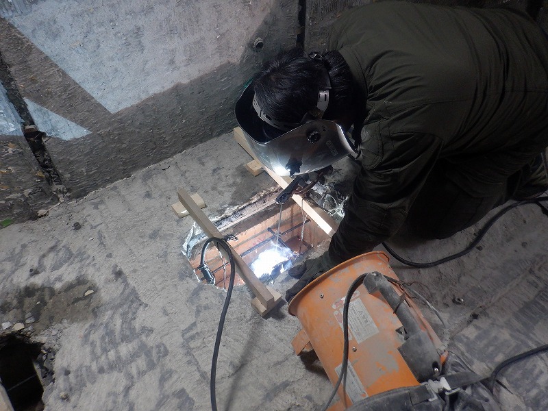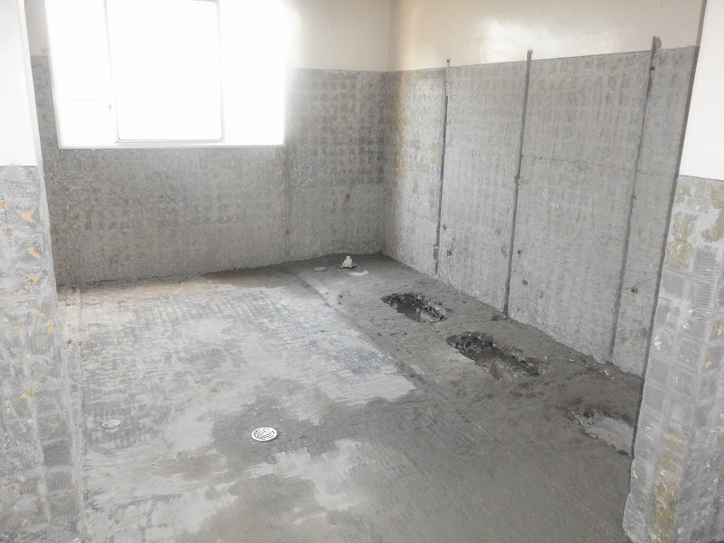 まずは和便器の穴を鉄筋で開口補強をしてからコンクリートを打ちます。