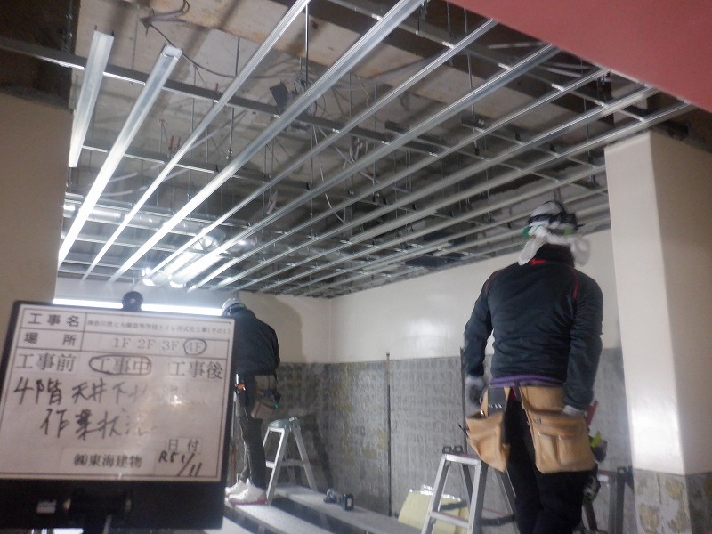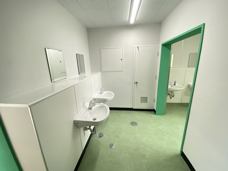 1階~4階の縦系統4か所と体育館のトイレ一部を改修させていただきました。