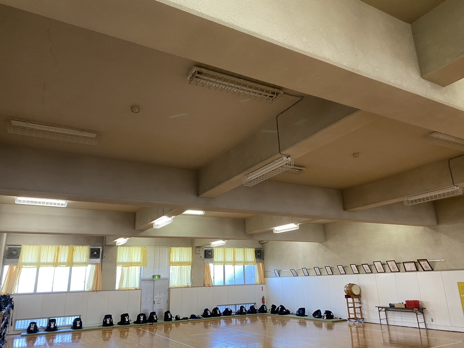 施工前まで照明器具が不点灯のまま館内を使われていたとのことで、交換後格技場内が明るくなったと