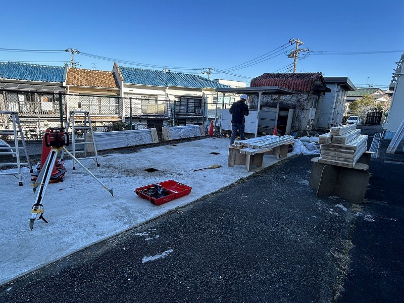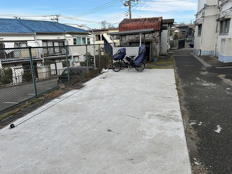 既存の自転車置き場隣のコンクリートが打ちっ放しになっている場所に新規の自転車置き場を設置します。