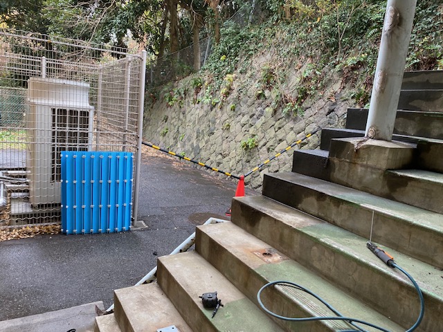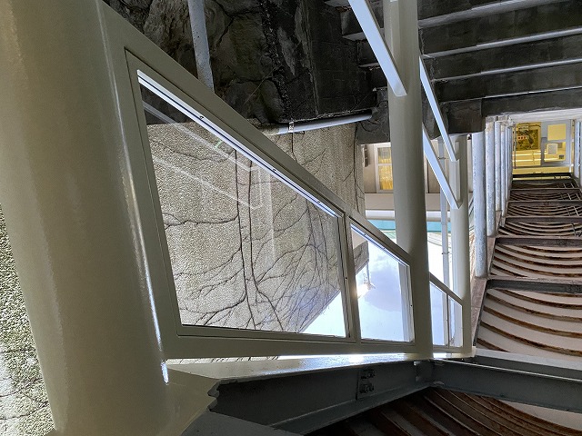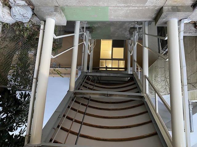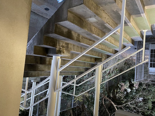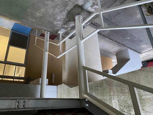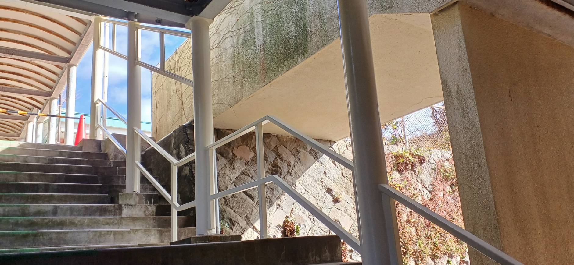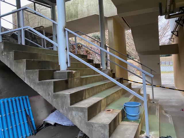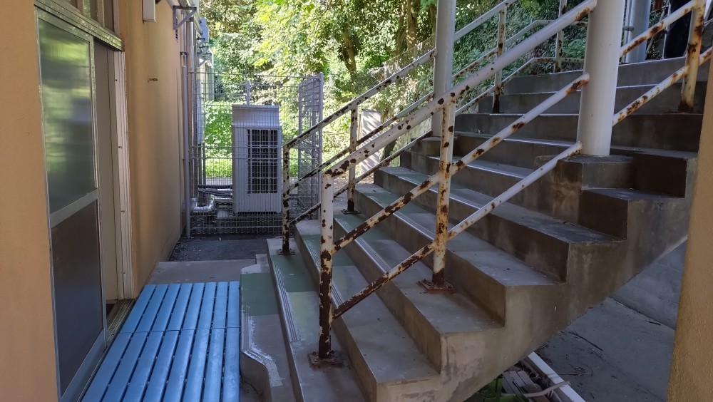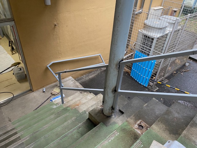 『渡り廊下階段手摺の改修工事』です。