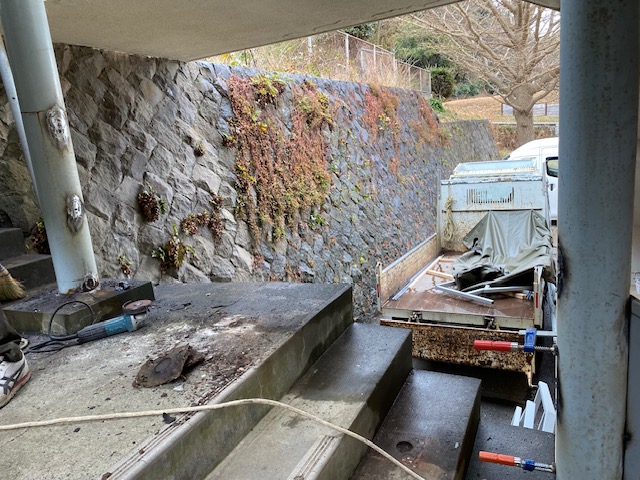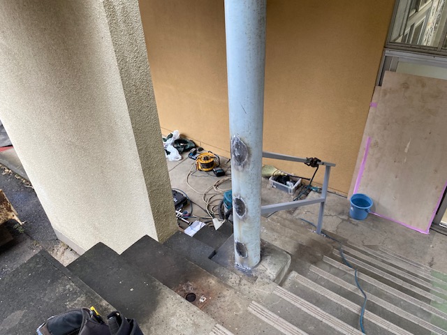 まずは劣化した既存の手摺りを撤去します。