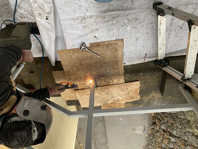 ↓新規手摺りを現場合わせで調整・溶接します。