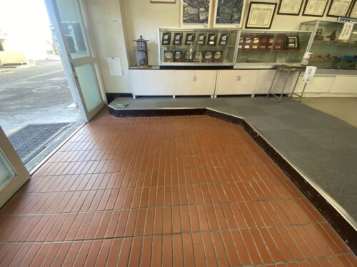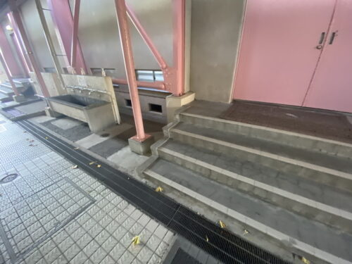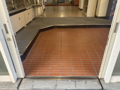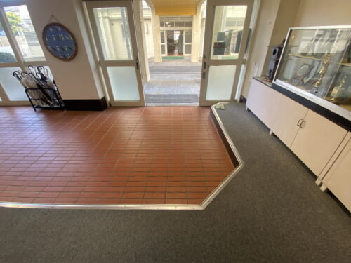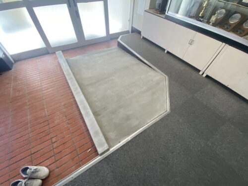 職員玄関なのですが段差がある為に車や台車での乗入れがしづらいと兼ねてから要望があった場所です。