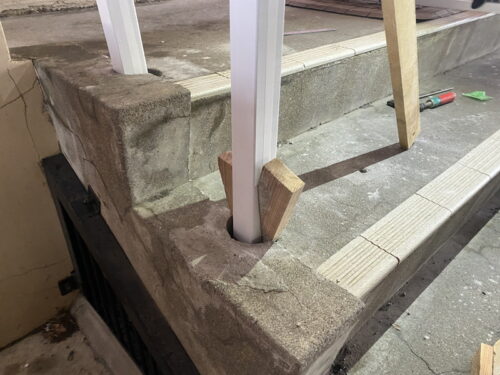 柱が建つ位置にコアー削孔にて孔を空けて手摺の設置開始です。